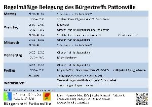 Im Bürgertreff Pattonville gibt es vielfältige Angebote der außerschulischen Kinder- und Jugendbildung, z.B. Offener Treff, Kindertreff, Ferienaktionen. Die Angebote richten sich darüber hinaus an das gesamte Gemeinwesen, auch an Familien, Erwachsene und Senioren. Ziel ist die fachliche und logistische Unterstützung und Förderung von ehrenamtlichem und bürgerschaftlichem Engagement. Zusammen mit Kooperationspartnern oder Bürgerinitiativen werden Angebotsformen entwickelt sowie Interessen und Ressourcen aufgenommen, um ein bedarfsorientiertes und vielfältiges Angebot im Stadtteil anzubieten. Die Angebote richten sich an alle, die ihre Freizeit in Pattonville verbringen.